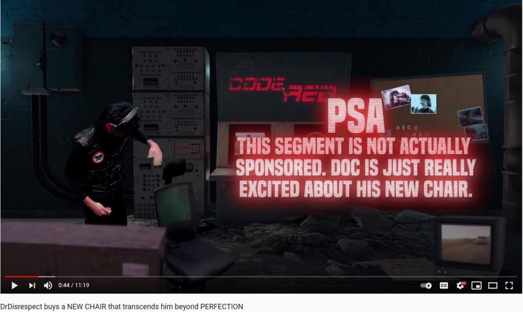 Another example is Dr. Disrespect, who showed off his new ergonomic chair, a SIDIZ T80 (he didn’t name the chair, but that’s the model) in a non-sponsored video: