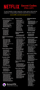 To view these, you can either go to: www.netflix.com/browse/genre/NUMBER and replace the NUMBER with one of the codes below:
