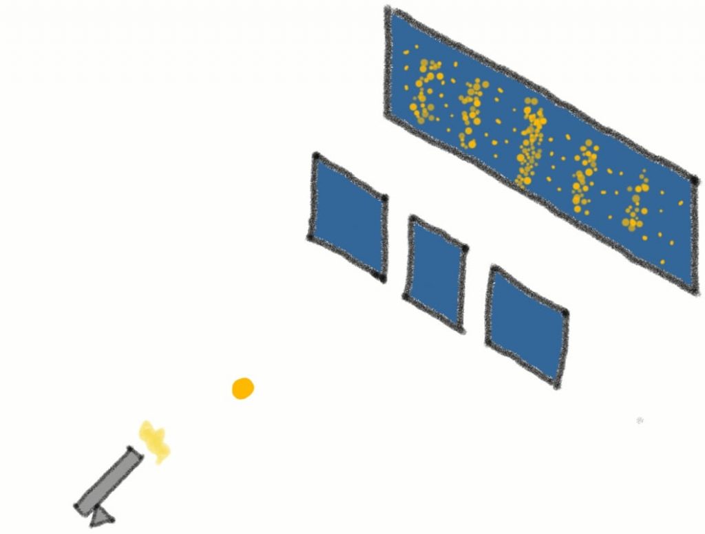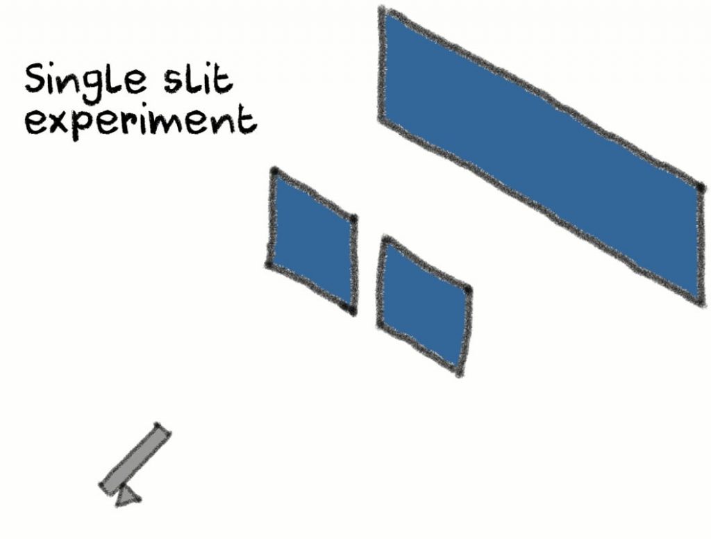 In this experiment, physicists use a specialized particle gun that shoots photons towards a screen. But between the screen and the light source you will have a plate with one or two slits.