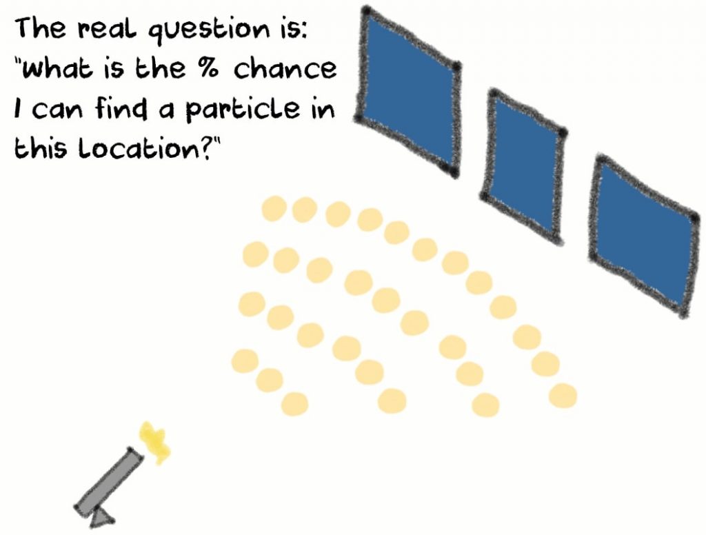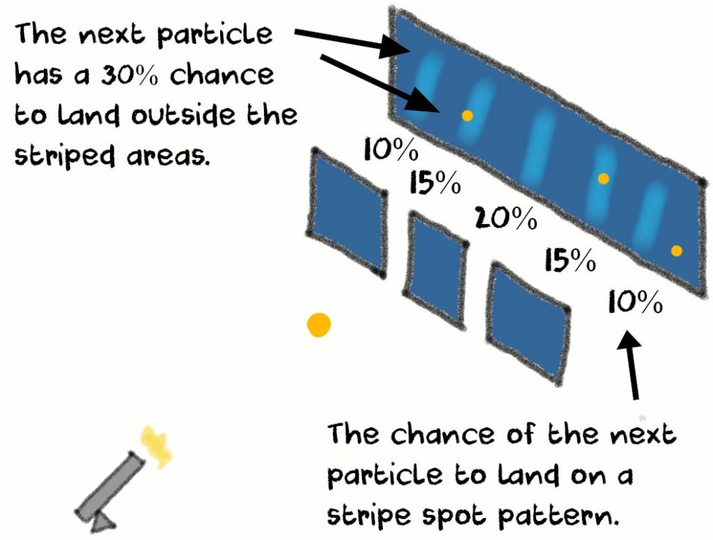 What quantum physicists discovered was that at microscopic levels, the Universe is governed by probability rather than determinism. It was very probable that a particle would land on one of the 5 interference stripes, but you couldn’t be sure that it would do so. It’s almost random.