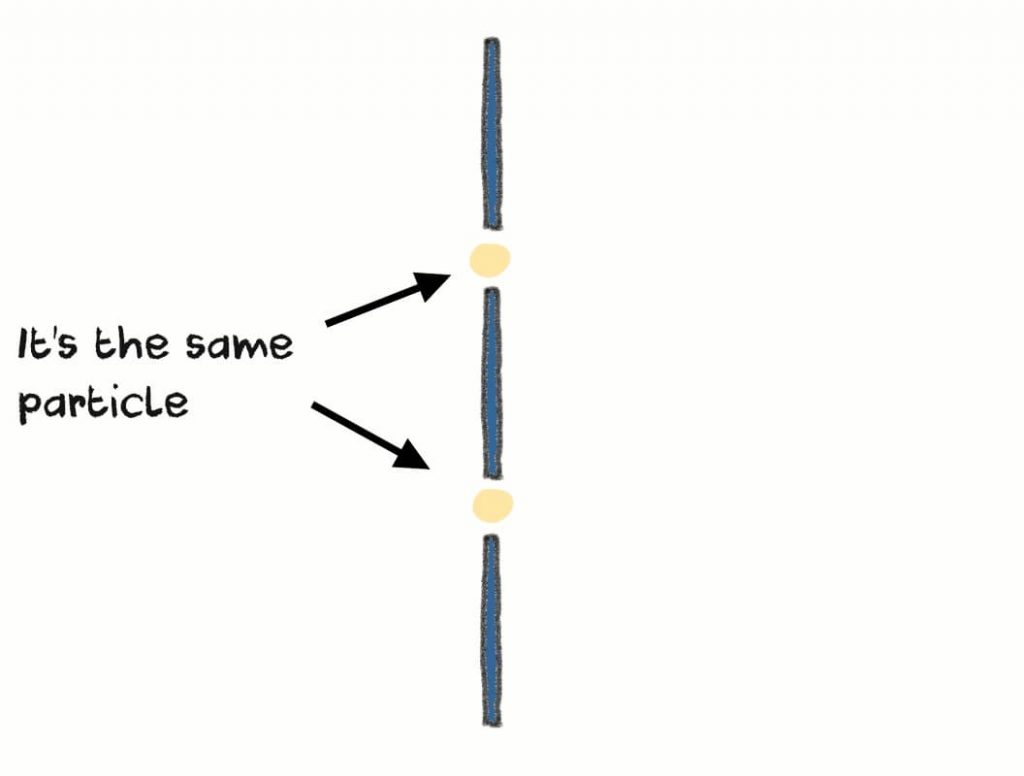 This still didn’t explain how the particle can somehow pass through both slits simultaneously.