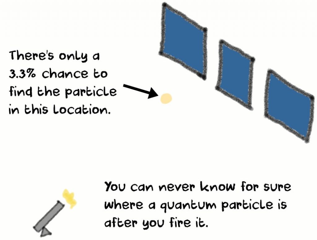 However, when you fire a particle, it stops having a clearly defined position in space. It also doesn’t have a predefined trajectory and destination.