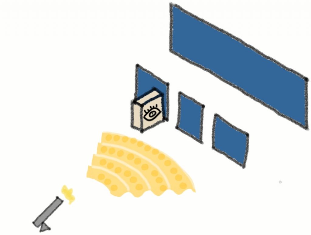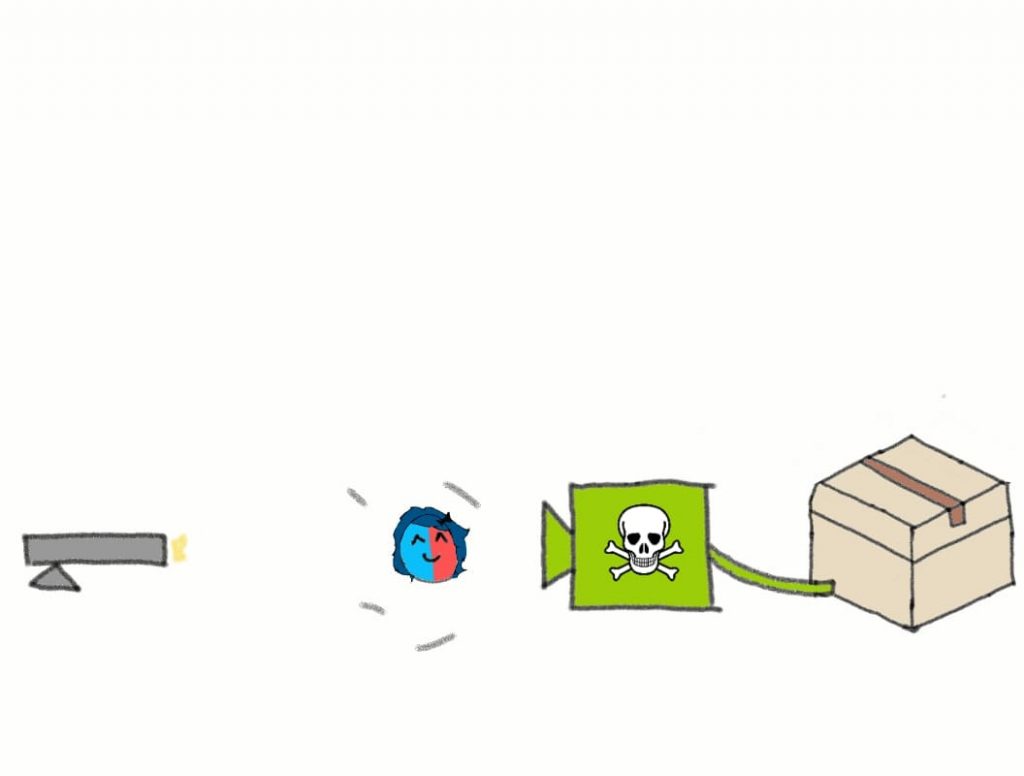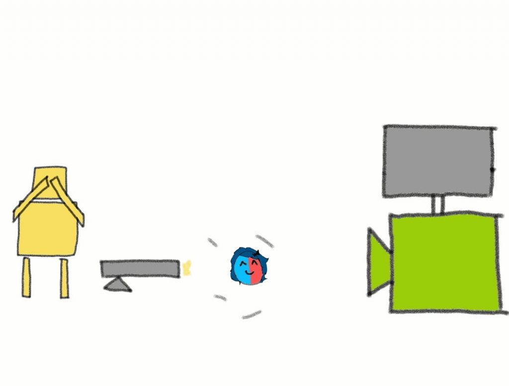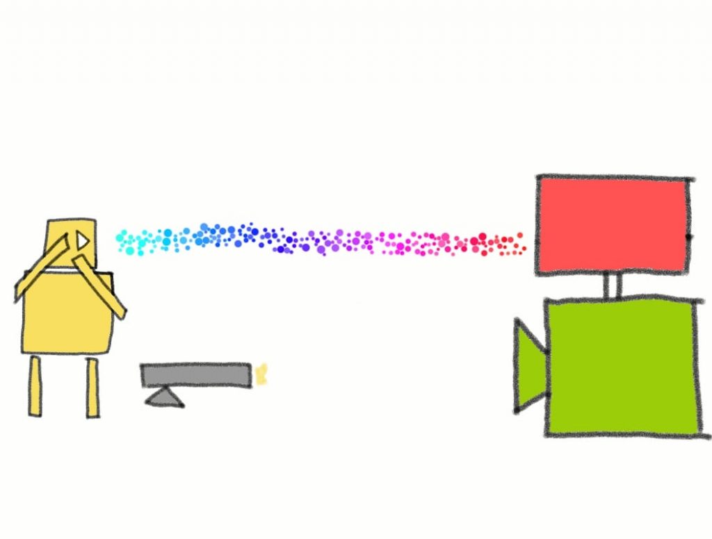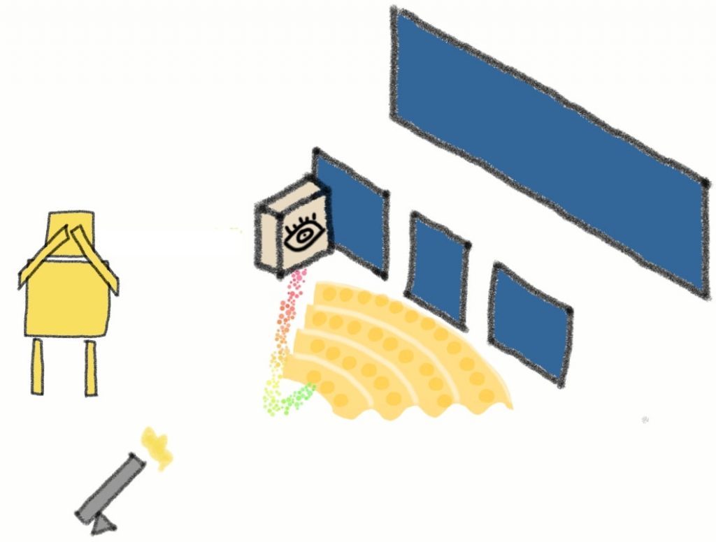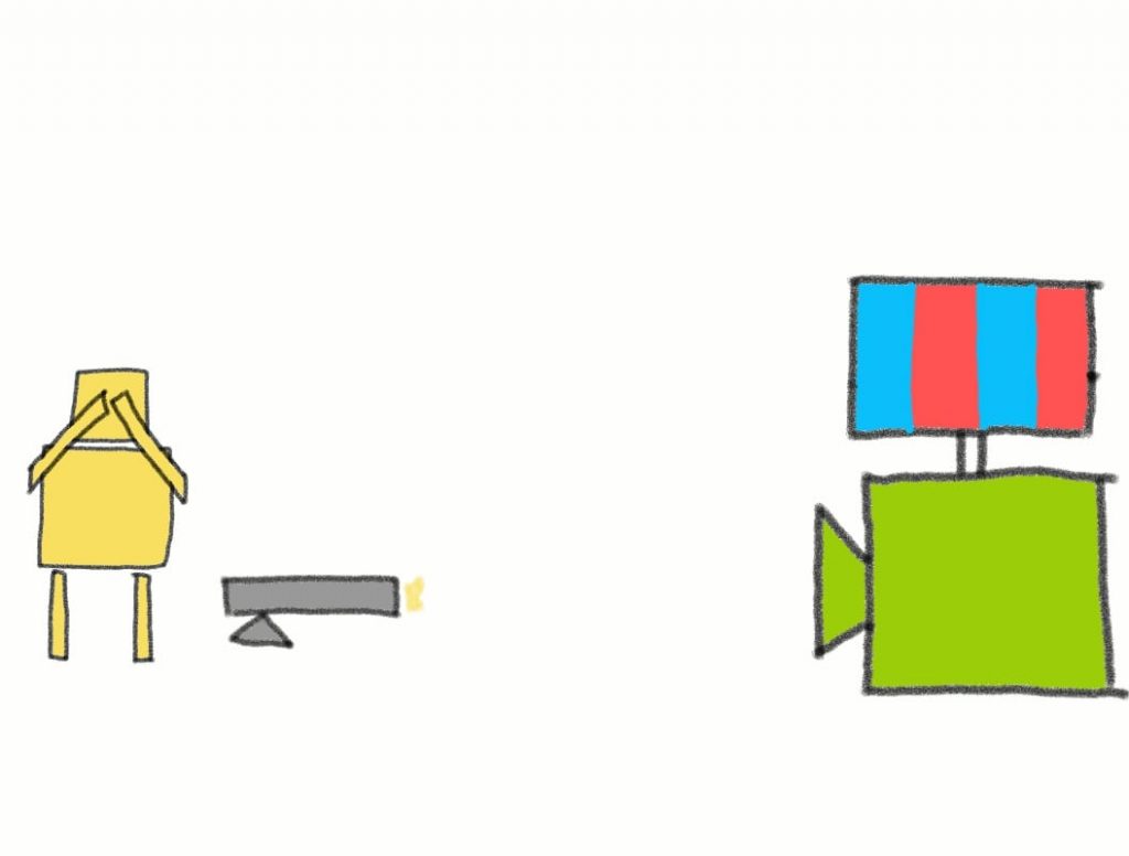 For this experiment, we’ll replace the screen with a box that has a cat inside.