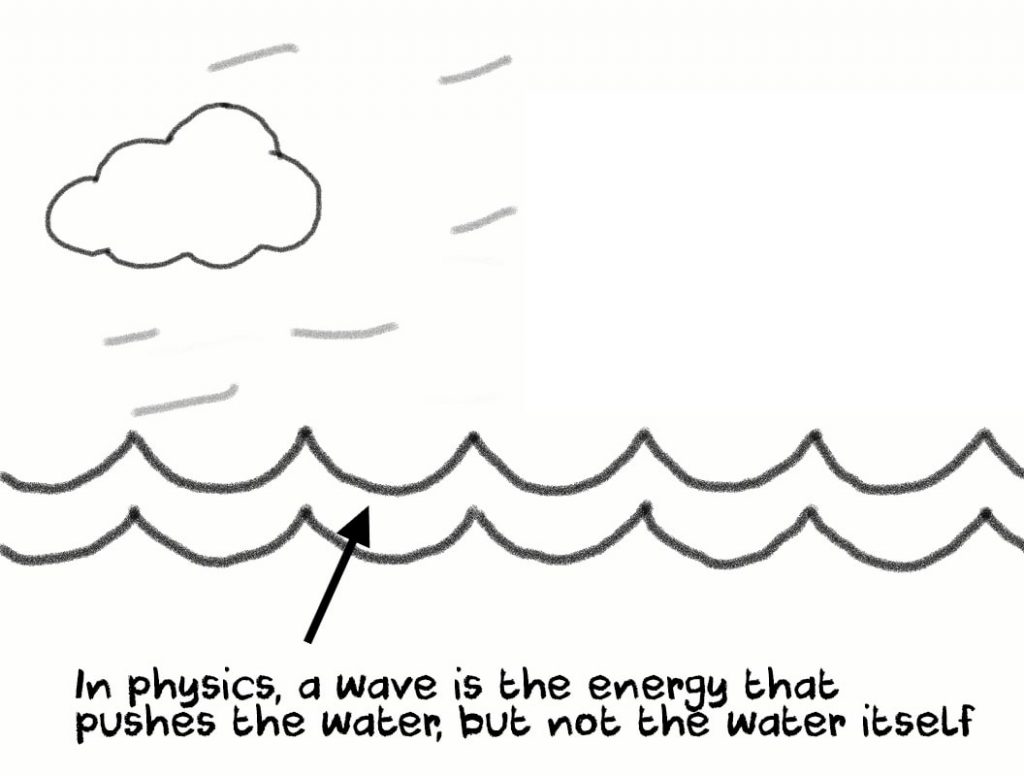 In normal day-to-day life, we say that the ripple and wave in the water is one and the same thing. But in physics, the wave isn’t actually the water moving up and down.