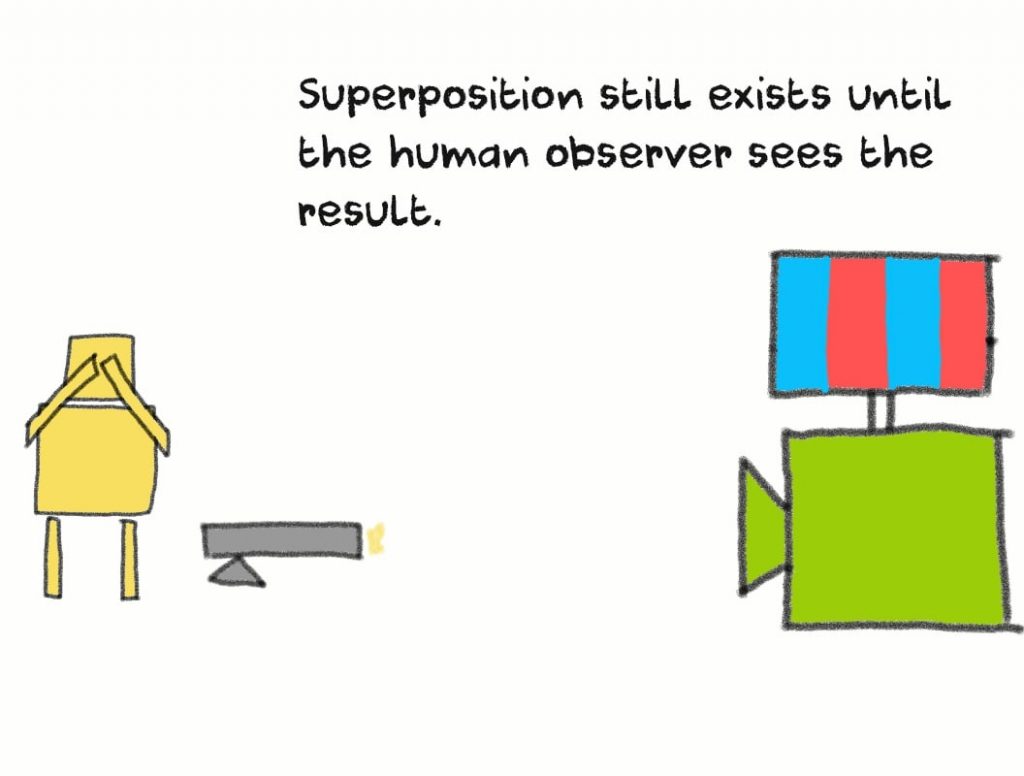 In other words, a particle’s superposition collapses once the detector makes a measurement, even if a human hasn’t seen the result.
