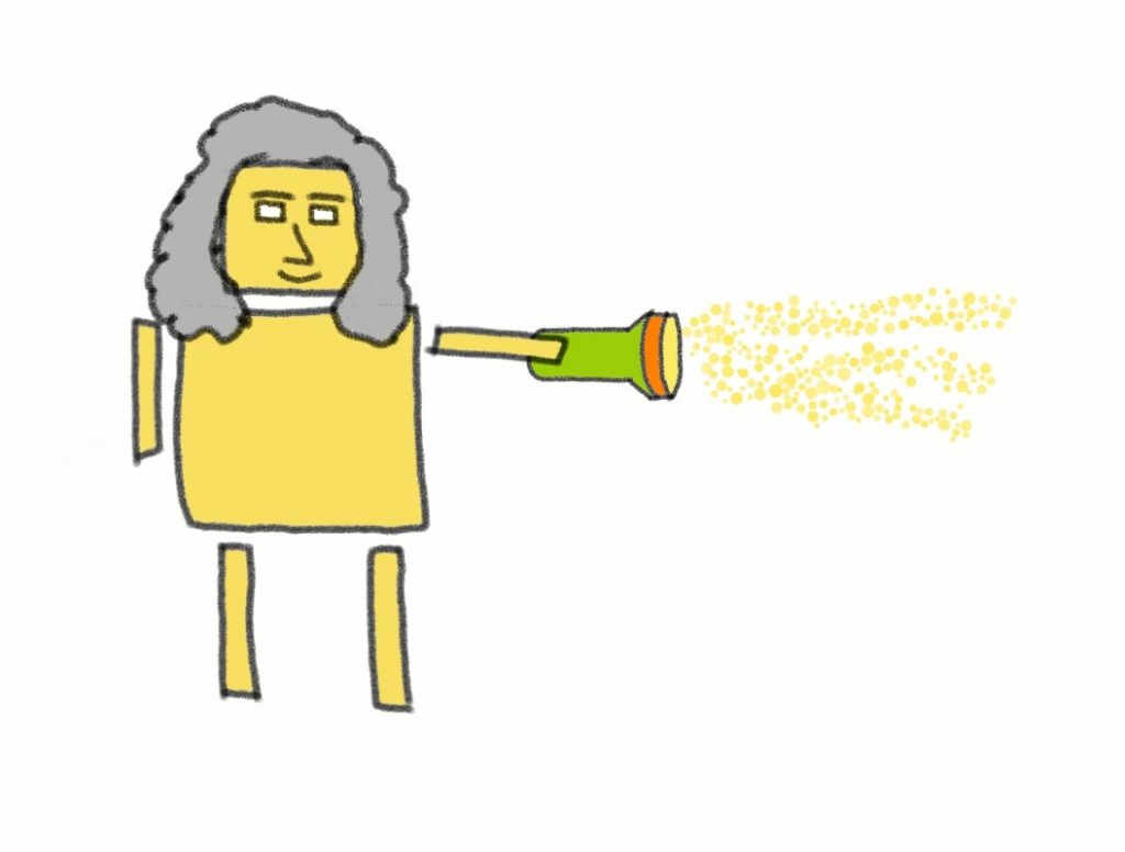 But classical physics had a hard time figuring out if light is a wave or a particle. Newton said light was a bunch of particles (we now call them photons, but the term didn’t exist in Newton’s time) that come out of a light source.