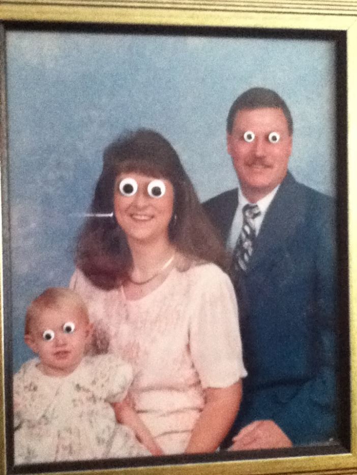 Also, do not let this opportunity go to waste! Add googly eyes to all of the photos in his house and see how long it takes him to notice.