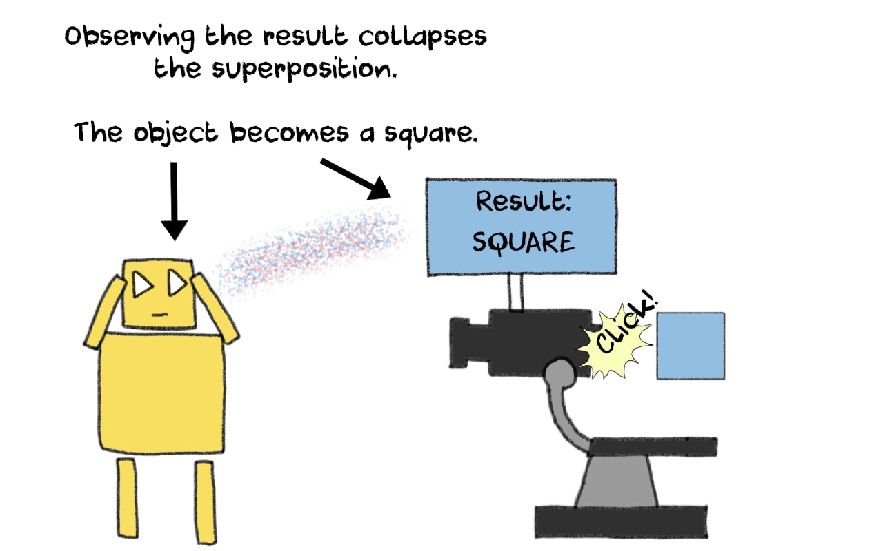 However, once you make a measurement of the quantum object, it then collapses all of the possible states into a single one.