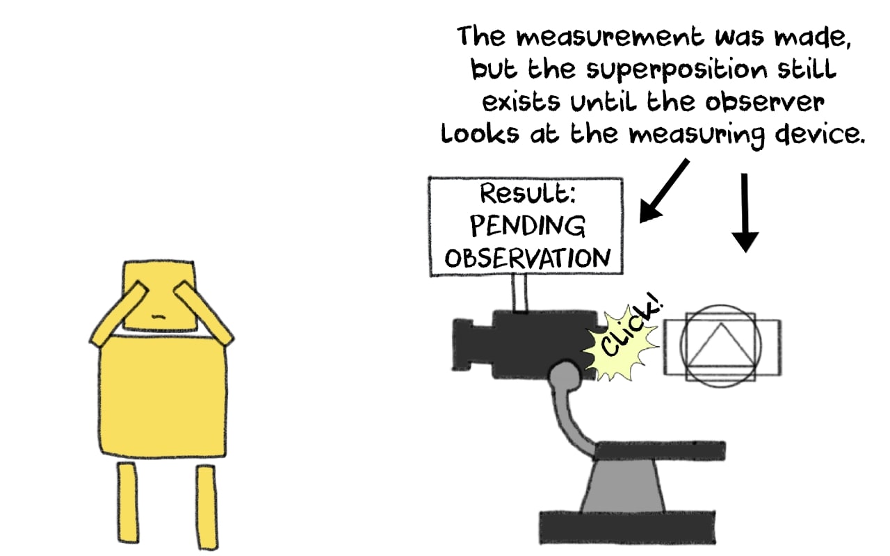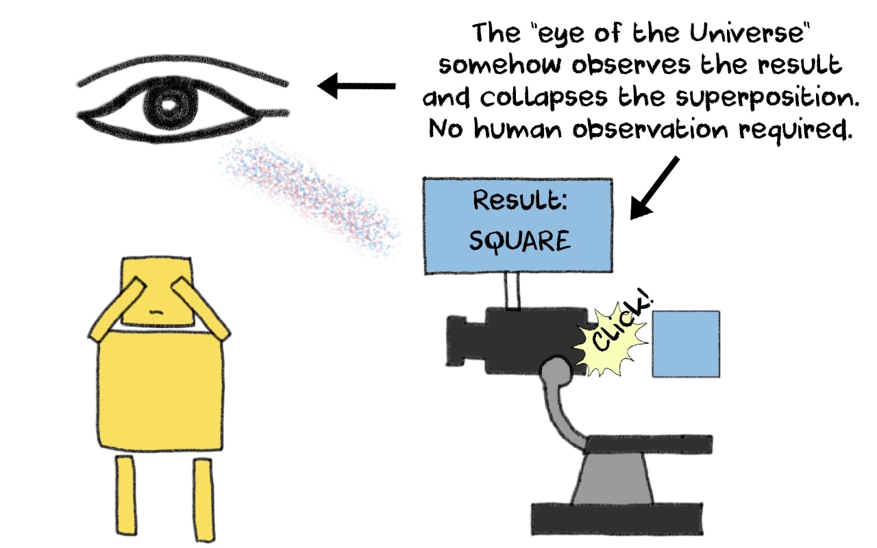 Thus, the Universe “looks” at the result of the measurement and creates a reality where the quantum object has a particular state. In other words, the Universe somehow “observes” reality. However, this argument has major issues.