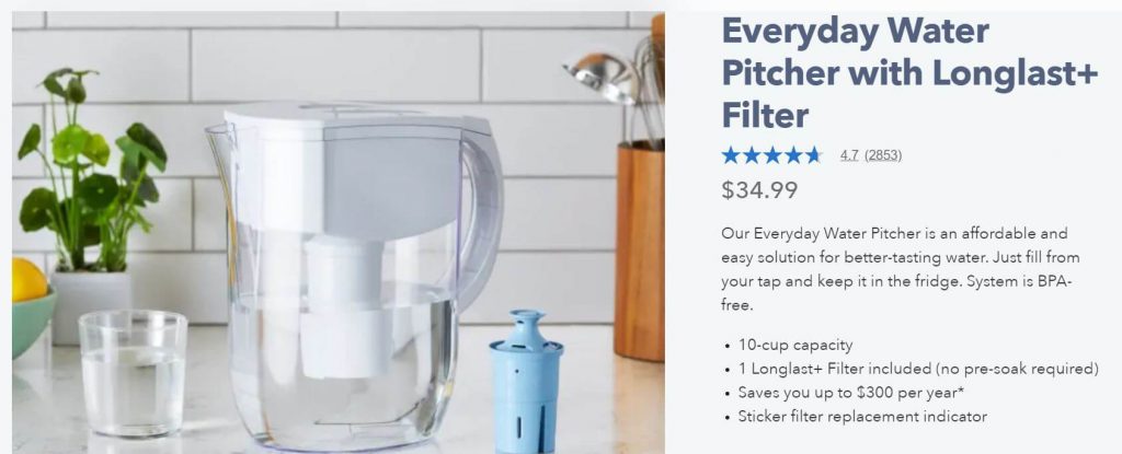 Below is an example of this, with the Brita Longlast Water Pitcher, which costs $39.99 on Amazon, but $34.99 on the actual Brita store.