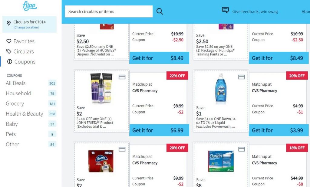 Flipp.com is a website that gathers supermarket product circulars and coupon / promotions from all supermarkets in the vicinity of your ZIP code.