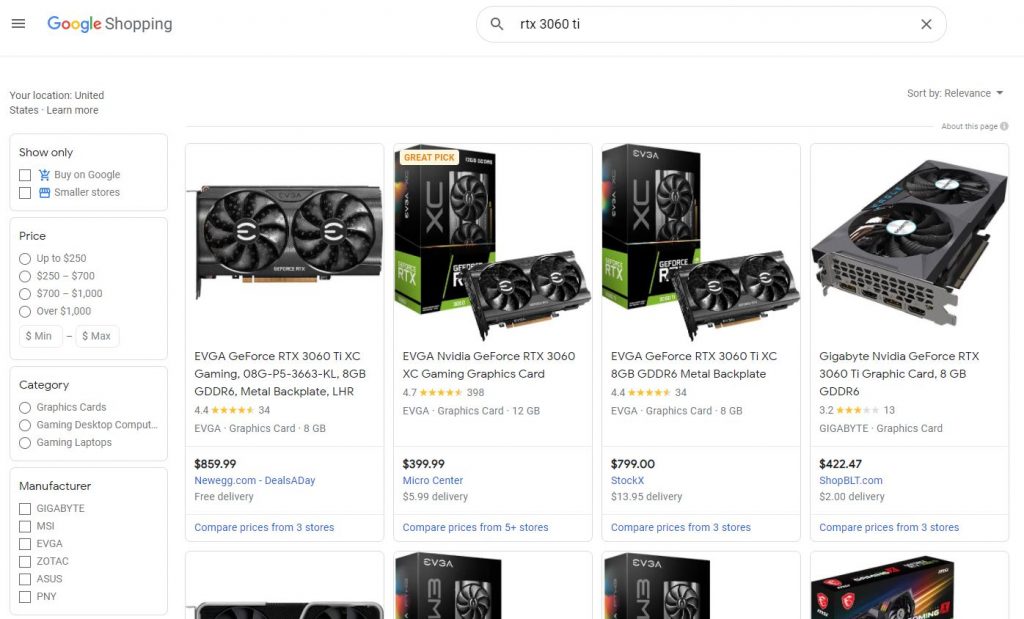 What makes Google Shopping so great is that it often lists products from smaller (but reputable) websites you might not have heard off, and these often come at a bigger discount than what you can get on Amazon, Newegg or eBay.
