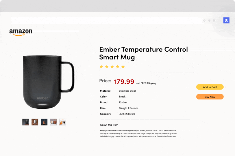 OctoShop is a Chrome desktop browser extension that finds the same Amazon product on other stores, and compares them in a variety of metrics such as: