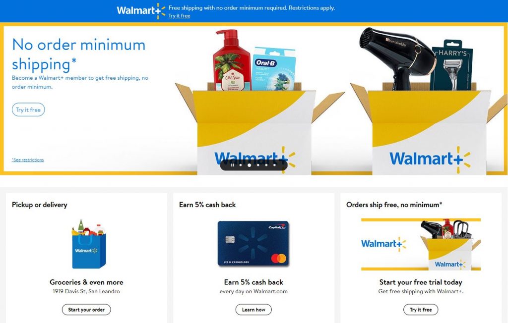 - Introduction of Walmart+, a free shipping membership with no minimums.